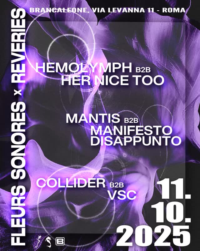 L’evento Fleurs Sonores x Reveries si terrà sabato 11 ottobre presso Brancaleone, in Via Levanna 11 a Roma.